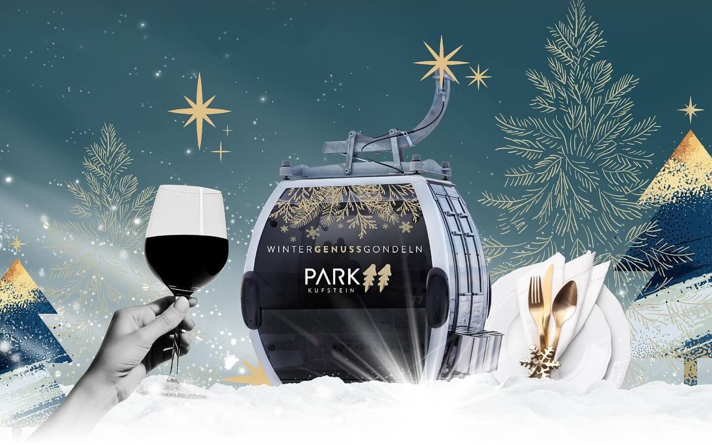 Knisterndes Feuers, leise Schneeflocken, strahlende Tannen – genieße exklusive Wintermomente mit dem Besten aus der Region in Deiner persönlichen Genuss-Gondel im Park Eleven und verbringe unvergessliche Abende in exklusiver Atmosphäre mitten im festlich beleuchteten Stadtpark Kufstein.